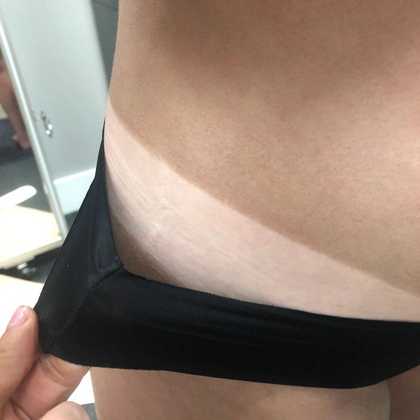 Wear whatever you’re comfortable with—a swimsuit, disposable underwear, or nothing. Just remember that whatever you wear will create tan lines.